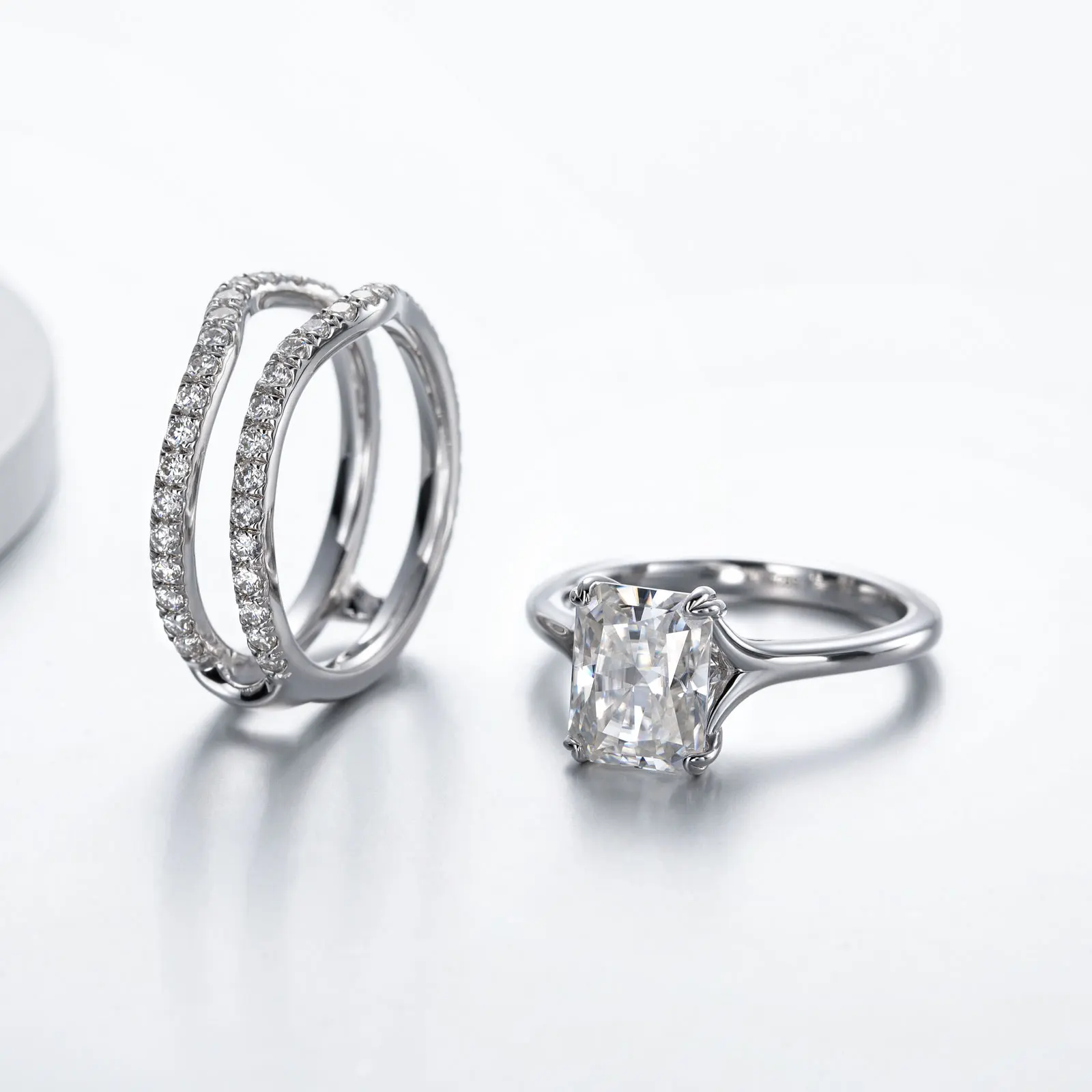 DEZO 3.0CT (7X9mm) Center Radiant Cut Moissanite Wedding Rings D Color VVS1 S925 Silver Bridal Sets for Women